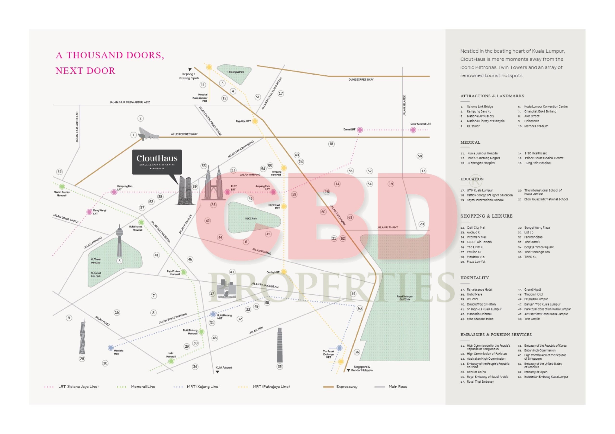 在马来西亚吉隆坡(Kuala Lumpur) 最繁华璀璨的心脏地带,格拉豪斯豪华公寓(CloutHaus Residences)尊邸傲然登场,坐拥尊贵吉隆坡市中心(KLCC) 核心区,重新定义都市奢华生活的新高度。项目雄踞罕有珍稀地段——正面朝向举世闻名的 Petronas Twin Towers,占据吉隆坡天际线最后一席黄金宝地,与世界级地标比肩而立,地位无可比拟。